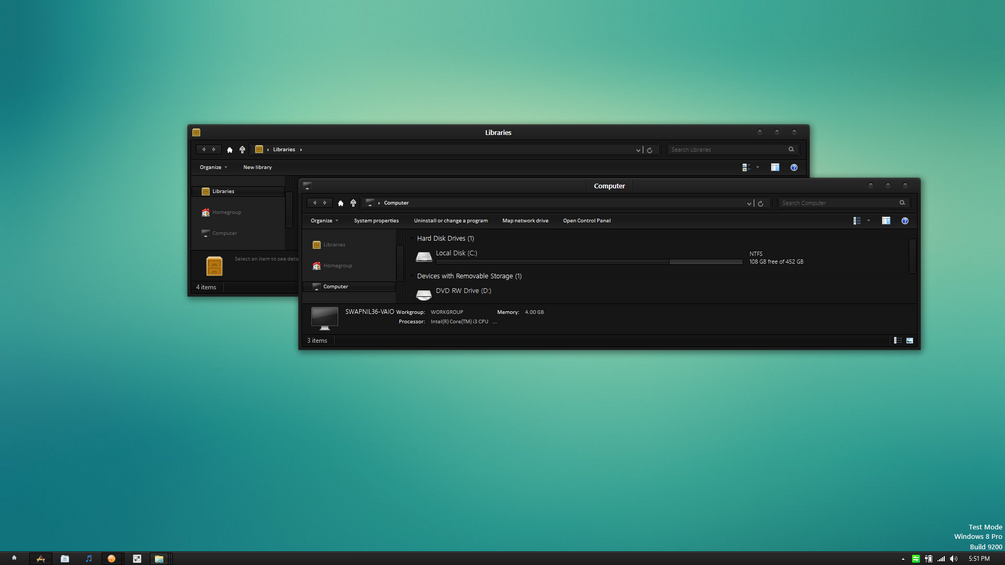 minimal 2.0 dark is very elegant theme for windows8\8.1 which supported both x86 & x64 versions of windows , it's dark & soft user interface makes your windows very beautiful & usable, it does not hurt your eyes so try this ...